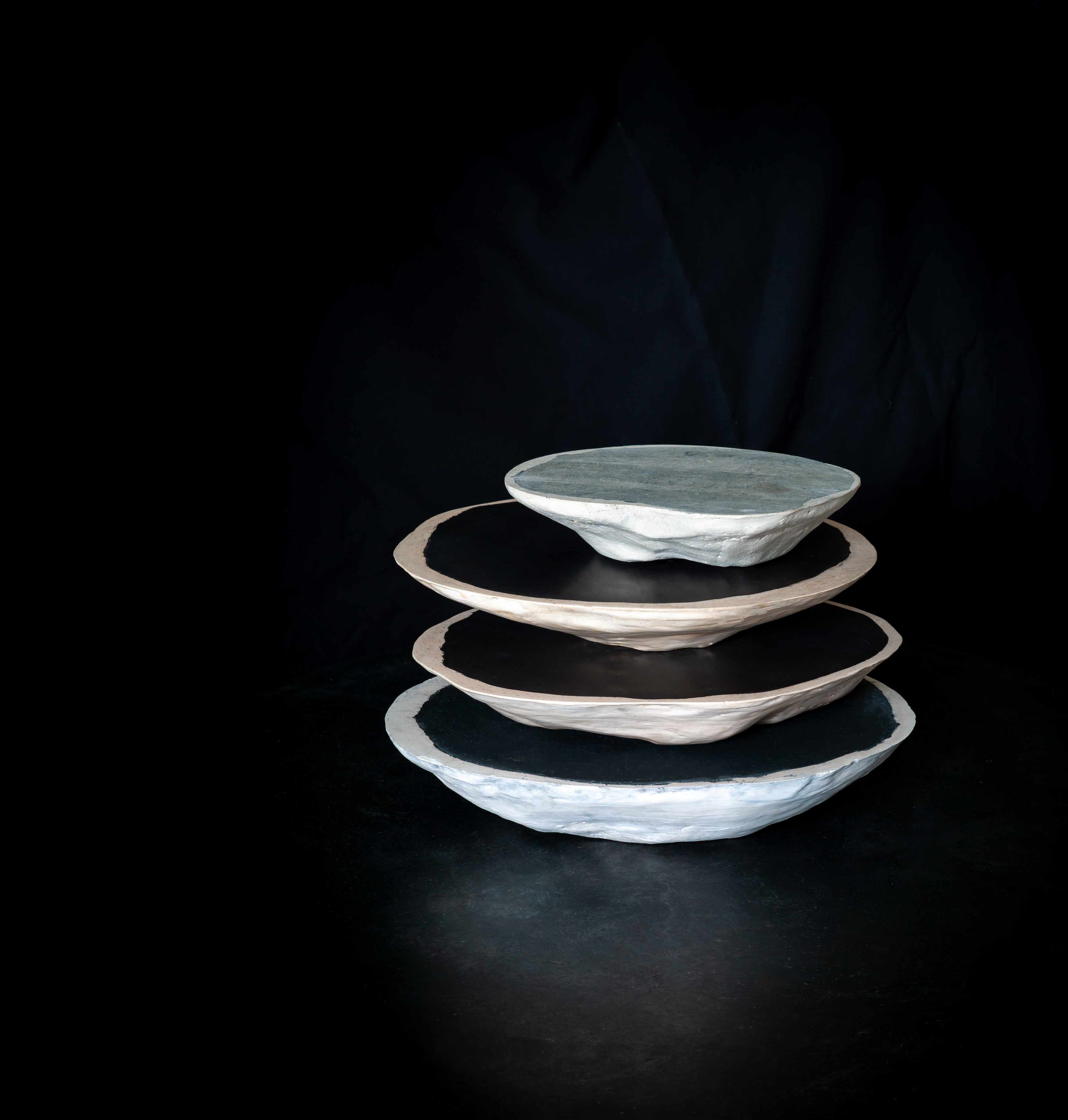 A side table born as a happy accident that turned out to be the very image of the word intuition, it had a life of its own and decided to set early into its current state, just like lava.